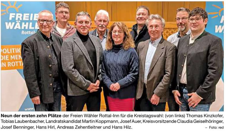 Die ersten Weichen für die kommende Kommunalwahl am 08.03.2026 sind gestellt. Die FWG Gangkofen nominiert mit Markus Aichner einen Kandidaten für die