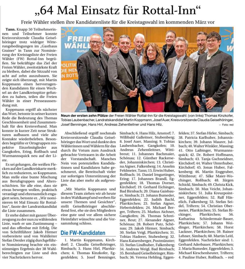 Bürgermeisterwahl wird in Gangkofen zum Mehrkampf: Freie Wähler nominieren Kandidaten 3. Dezember 2025